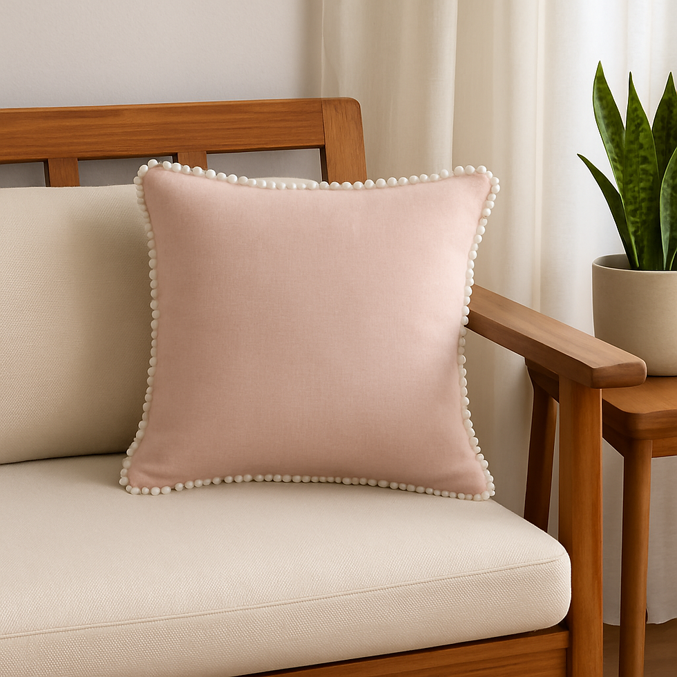 Ruby Bloom – Beige Cushion Cover with Red Floral Embroidery